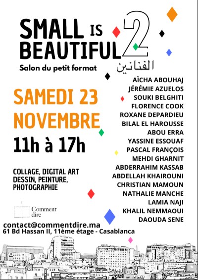 Smallisbeautifull met à la disposition du visiteur et ce pendant deux jours seulement , des œuvres décoratives, engagées, expérimentales, légères ou graves élaborées avec sincérité ; laissant entrevoir derrière ces petits cadres, émancipation, liberté et grandeur d’âme.